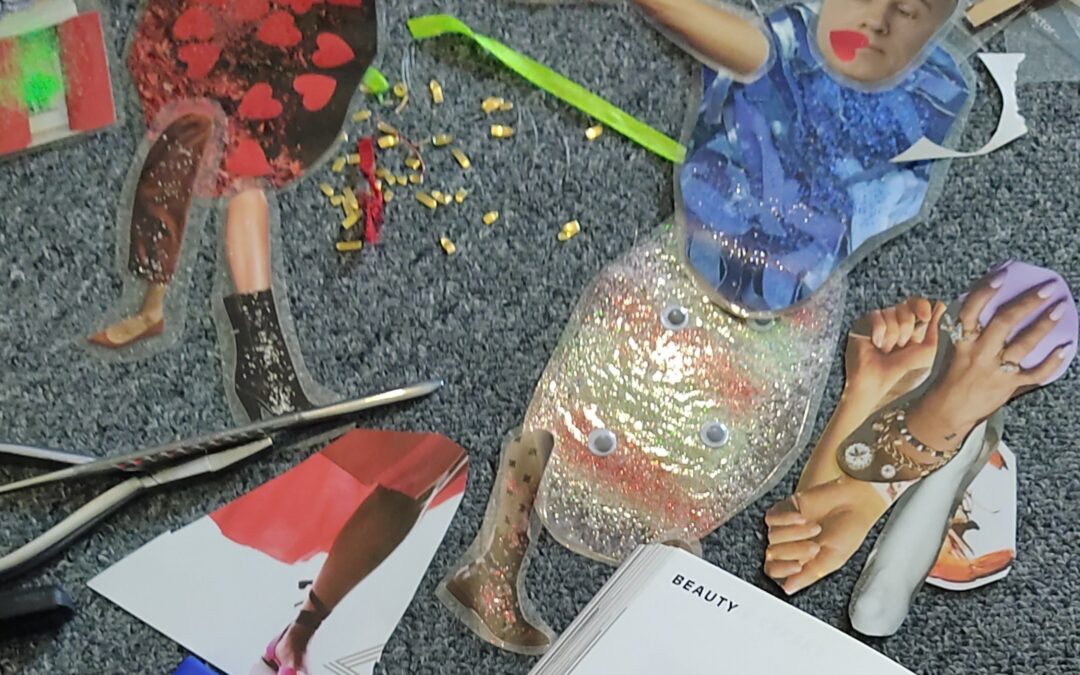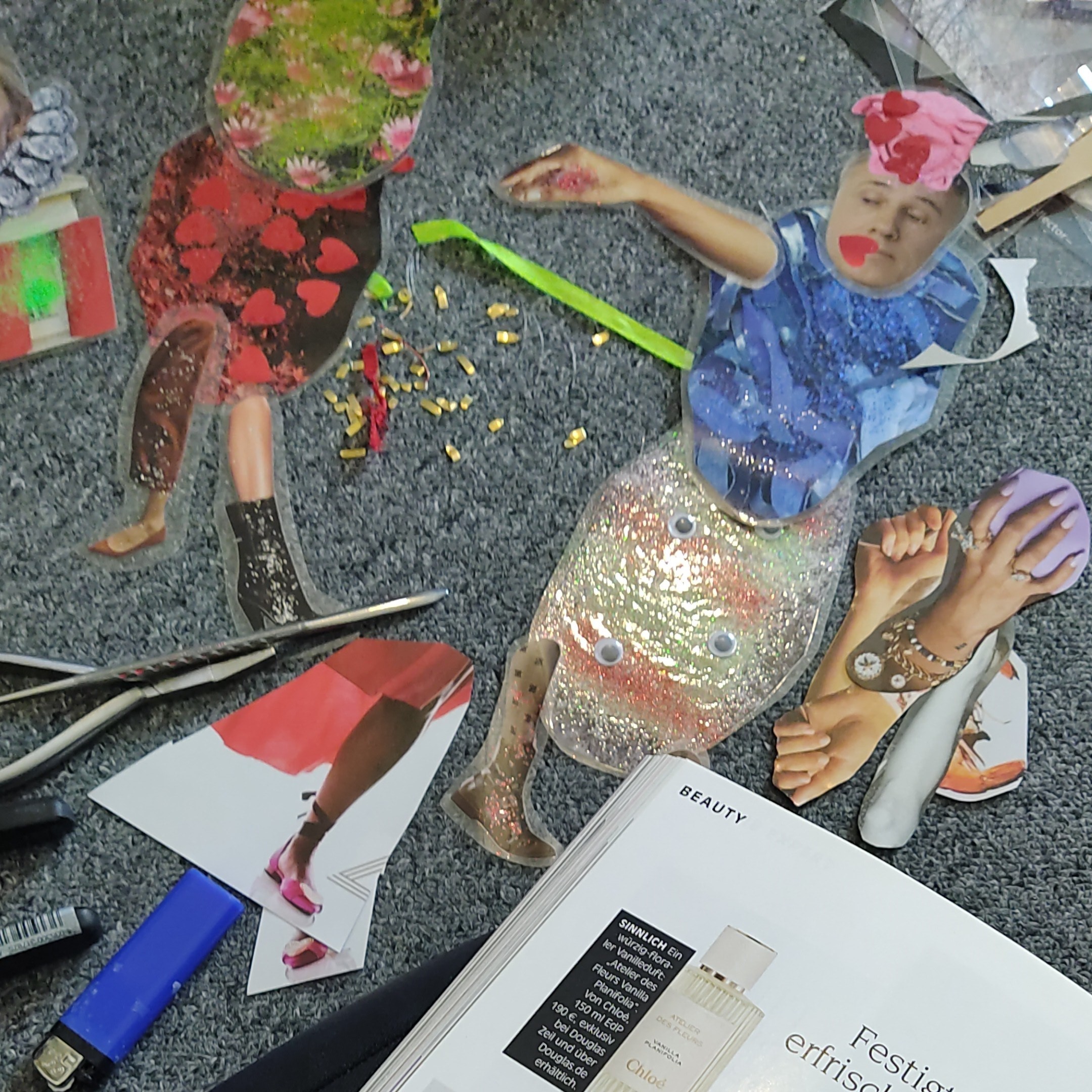 KURZBESCHREIBUNG | Wie Hannah Arendt sagte: „eine Welt, die Platz für die Öffentlichkeit haben soll, kann nicht nur für eine Generation errichtet oder nur für die Lebenden geplant sein; sie muss die Lebensspanne sterblicher Menschen übersteigen.“ Das Buch Arendts „Viva Activa – oder: vom tätigen Leben“ handelt von politischer Freiheit und selbstverantwortlicher aktiver Mitwirkung der Bürger am öffentlichen Leben in den USA. Die Philosophin entwickelt daraus eine Theorie des politischen Handelns. Die Serie Mario-nett-en teilt das Wort in einen Männlichen Vornamen, nämlich „Mario“ und dann „nett“. Ein Wortspiel. Ist unsere Gesellschaft noch gesund, wenn wir in Männer und Frauen einteilen? Viel mehr braucht es ein Verbinden der beiden Seiten, wobei die Frage nach Transgender usw. hinten angereiht wird. Was hat das nun mit VIVA ACTIVA zu tun? Das Ziel der künstlerischen Arbeit ist das Hinterfragen gelebter Realität, vielmehr das Entwickeln neuer Perspektiven auf die Realität. Der Mann -also Mario- wird wenig Nett in seinem männlichen Stereotypen sein, denn Männer sind hart. Frauen wiederum, werden aufgrund der einseitigen christlichen Rezeption der Kunst, die sie bis in die Gegenwart in Modezeitungen und dergleichen begleitet, als schön und nett beschrieben. Frauen sind demnach vereinzelte schöne bis sexualisierte Menschen mit weiblichem Geschlecht. Männliche Eigenschaften, wie Stärke, Denken, etc. werden gerne ausgespart. Der Titel „Mario-nett-en“ zielt daher auf die Veränderung der nach wie vor in unserer Gesellschaft verankerten Stereotypen ab. VIVA ACTIVA und MARIO-NETT-EN repräsentieren Solidarität unter Menschen und Zusammenhalt. Die Werkreihe zeigt durch ihren Fokus auf Marionetten, die Stereotypen und Rollen auf und hinterfragen sogleich, wie können wir uns anders Bewegen als die üblichen Hampelfiguren. Sind wir selbst bereits Mario-nett-en? Betrachtenden lädt jede Mario-nett-e mit ihrer Schnur zwischen den Beinen zum Betätigen ein. So bewegt sich das Collagenobjekt in Interaktion. Es entsteht eine unmittelbare „Verbindung“ zwischen dem Publikum und Collage durch den Zug, ein Be-Zug, ein Be-ZIEHEN wird möglich.
